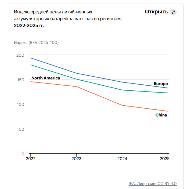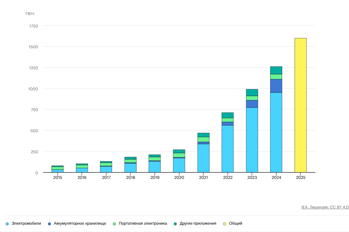 "В 2025 году объем глобального внедрения литий-ионных батарей был в шесть раз выше, чем в 2020 году. Электромобили остаются доминирующим драйвером спроса: мировые продажи достигли нового рекорда и составляют каждую четвертую проданную в мире машину.