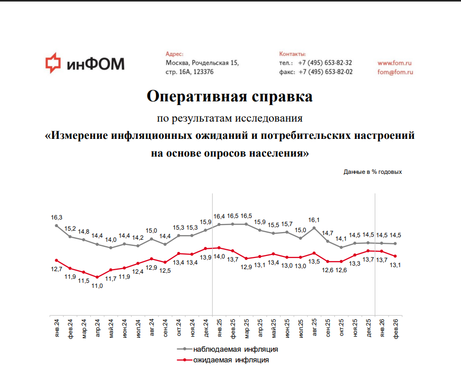 Инфляционные ожидания россиян в феврале 2026 года наконец то снизились до 13,1%. Терпение и ̶т̶р̶у̶д̶ жесткая ДКП со временем (не быстро...) дали эффект.