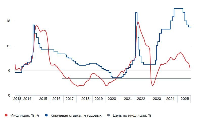 "Совет директоров Банка России 19 декабря 2025 года принял решение снизить ключевую ставку на 50 б.п., до 16,00% годовых. Экономика продолжает возвращаться к траектории сбалансированного роста.