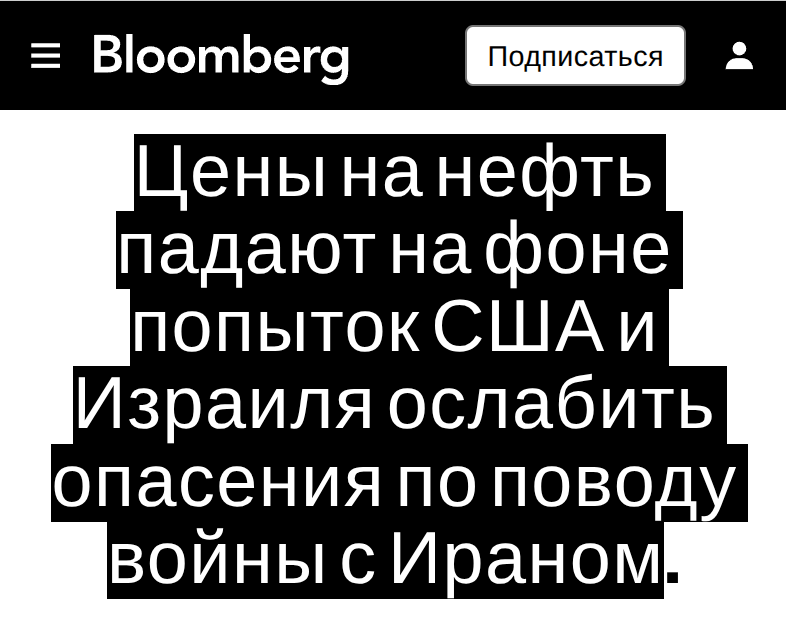 «Цены на нефть падают на фоне попыток США и Израиля ослабить опасения по поводу войны с Ираном».