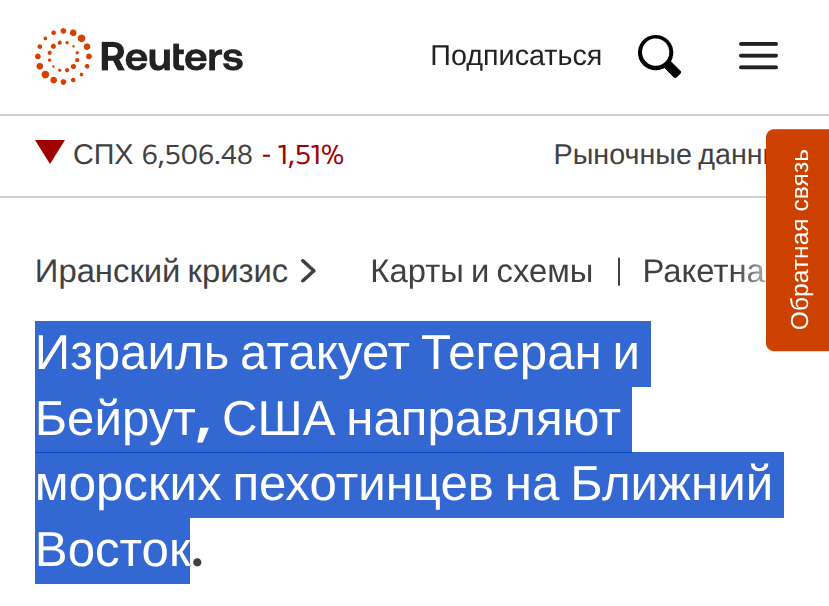 "Израиль атакует Тегеран и Бейрут, США направляют морских пехотинцев на Ближний Восток".