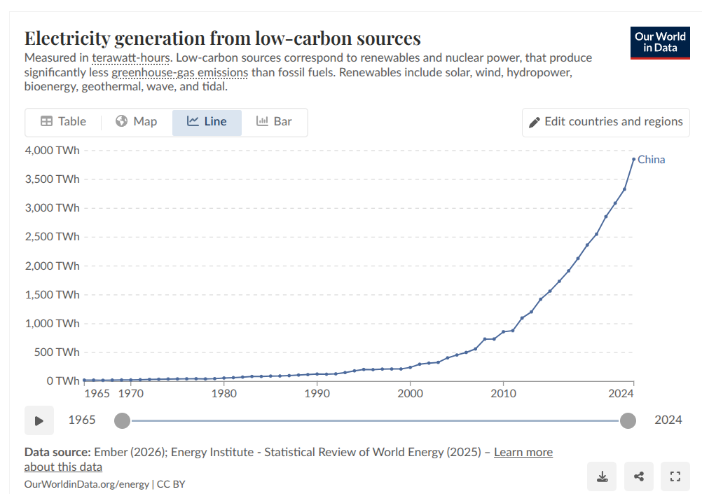 Но есть одно большое НО. Технологии, не зависящие от нефти и газа сильно продвинулись со времён 1970-х гг. Свыше 50% всей нефти потребляет транспорт. 59% легковых авто и LCV, выпущенных в 2025 г в Китае - имели электродвигатель. Китай целенаправленно и с высоким темпом вводит генерирующие мощности ВИЭ.
