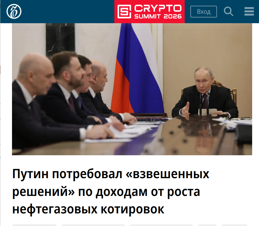 "Путин потребовал «взвешенных решений» по доходам от роста нефтегазовых котировок".