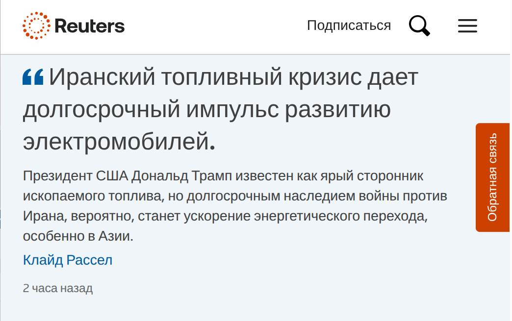 "...долгосрочным наследием войны против Ирана, вероятно, станет ускорение энергетического перехода, особенно в Азии".