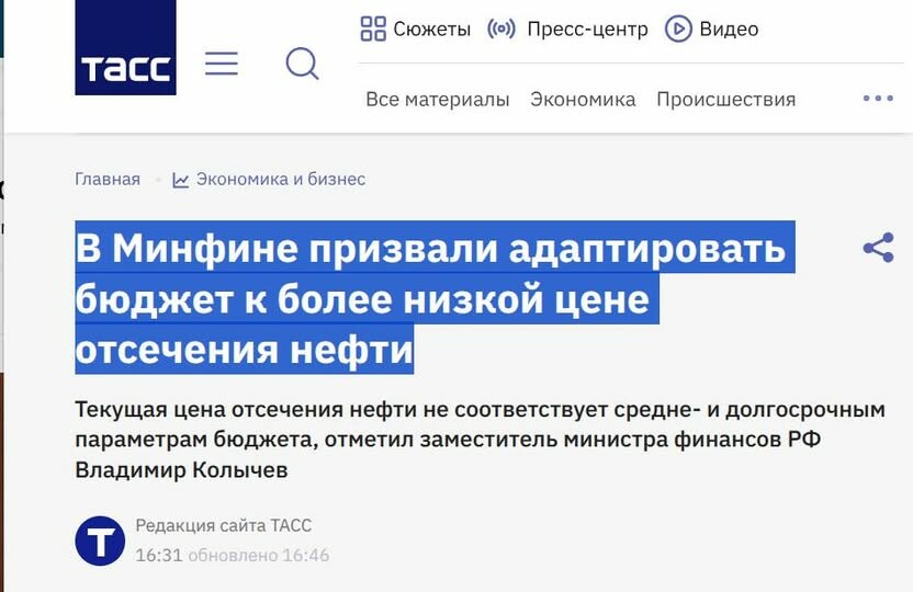 "В Минфине призвали адаптировать бюджет к более низкой цене отсечения нефти".