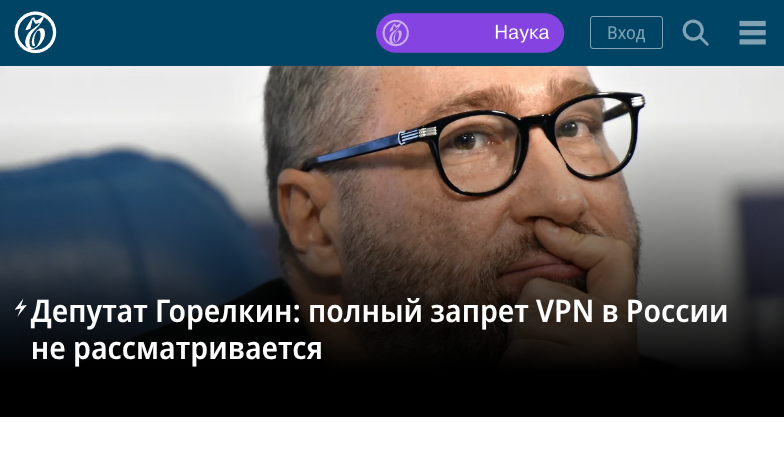 "Депутат Горелкин: полный запрет VPN в России не рассматривается".