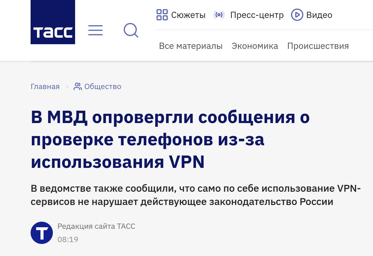 "В МВД опровергли сообщения о проверке телефонов из-за использования VPN".