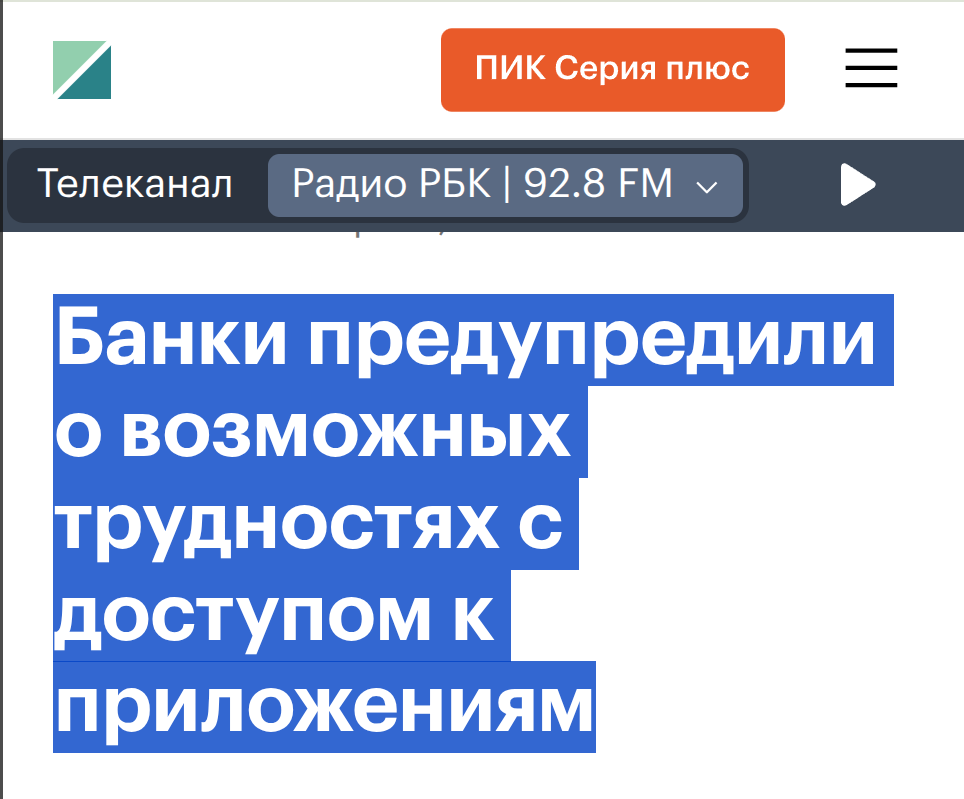 "Банки предупредили о возможных трудностях с доступом к приложениям.