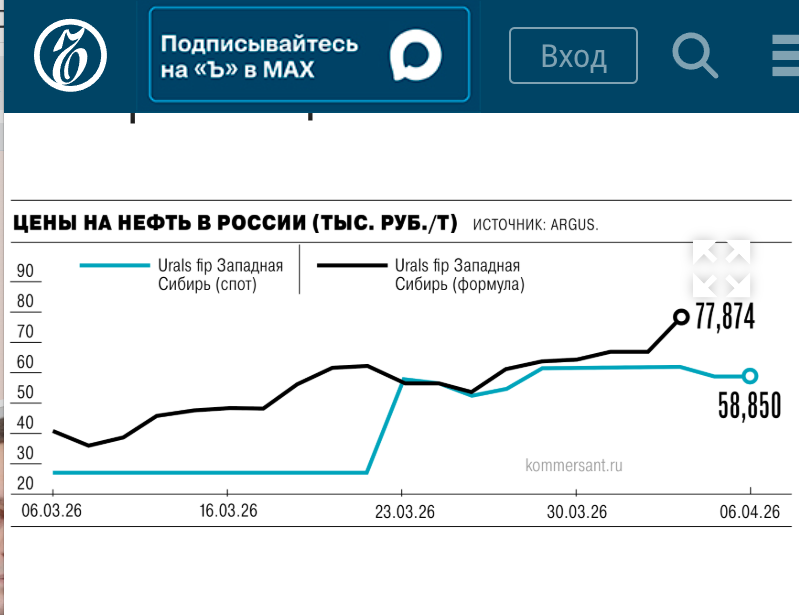 Мартовские $77 за баррель скажутся на поступлениях в апреле. Пока же бюджет продолжает находиться в сложном положении — в марте на закрытие дефицита из ФНБ было потрачено еще 60 млрд руб.