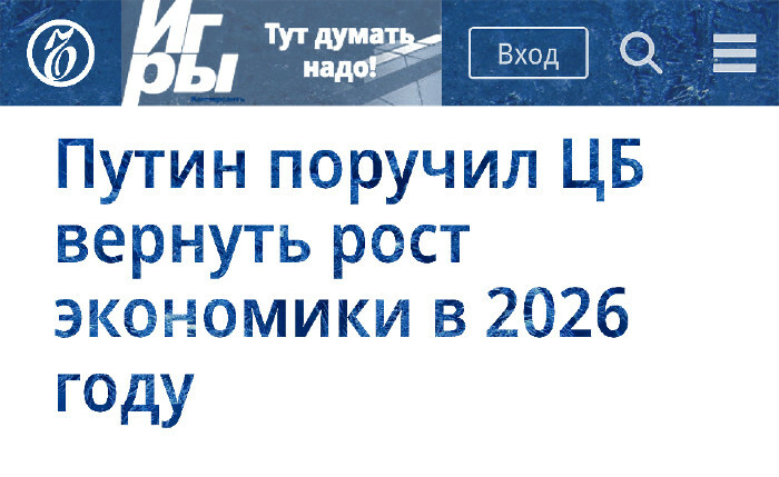 "Президент России Владимир Путин поручил правительству и Банку России восстановить темпы экономического роста в 2026 году".
