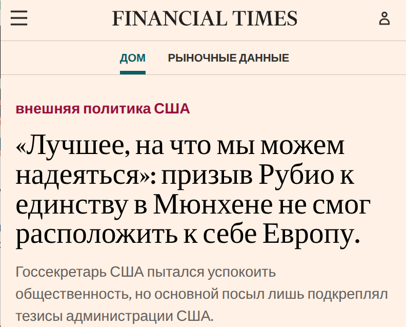 "«Лучшее, на что мы можем надеяться»: призыв Рубио к единству в Мюнхене не смог расположить к себе Европу".