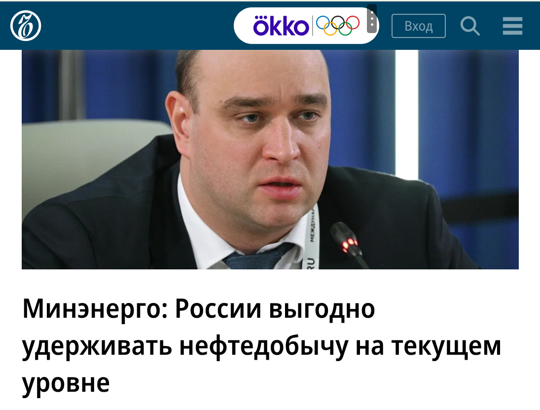Вот и приходится чиновникам делать хорошую мину при плохой игре: "России выгодно удерживать нефтедобычу на текущем уровне". Иного выхода и нет.