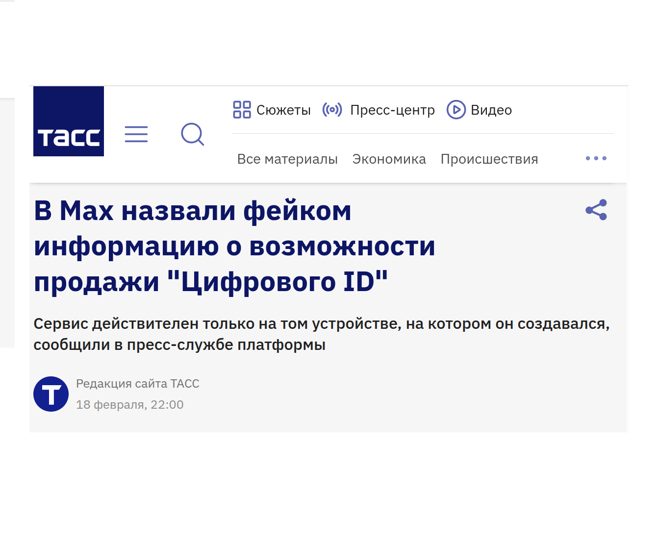 "В Max назвали фейком информацию о возможности продажи "Цифрового ID"".