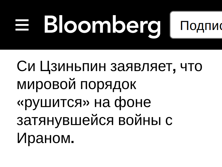 "Си Цзиньпин заявляет, что мировой порядок «рушится» на фоне затянувшейся войны с Ираном".