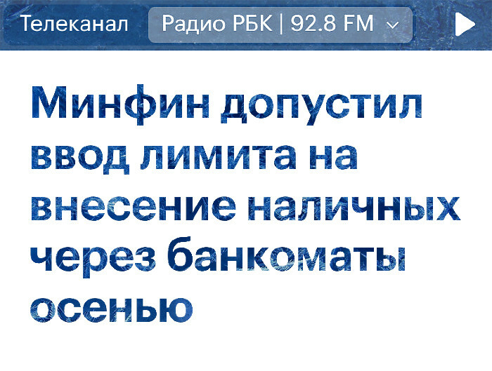 "Минфин допустил ввод лимита на внесение наличных через банкоматы осенью".