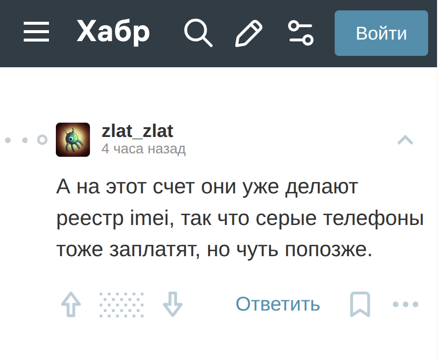 "А на этот счет они уже делают реестр imei, так что серые телефоны тоже заплатят, но чуть попозже".