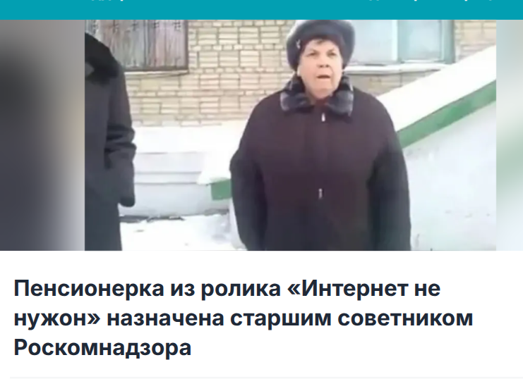 74-летняя Раиса Ивановна Бубнова приступит к исполнению обязанностей уже в понедельник. В её задачи войдет кураторство «методологии оценки бесполезности сетевого контента» и выработка предложений по ужесточению ответственности за «разведение этого серфинга».