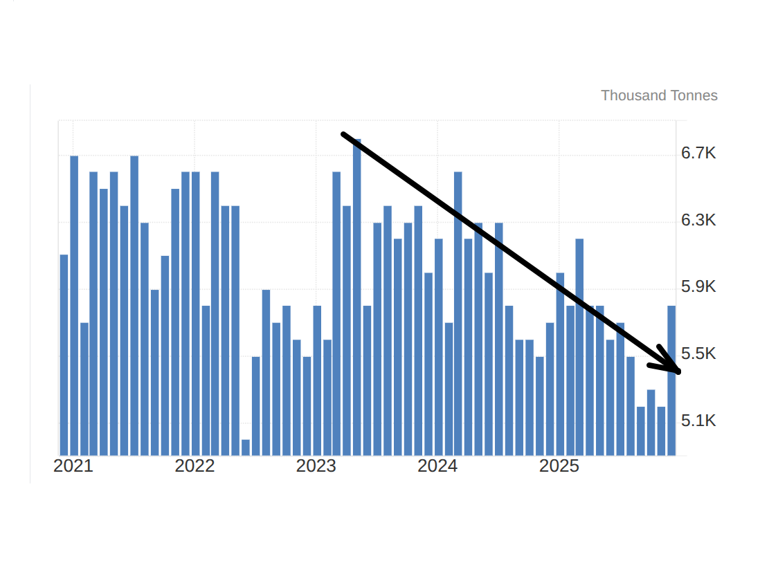 Даже Блумберг грешит кликбейтом: вряд ли падение добычи аж на 0,496% так уж существенно. Даже если оно - второй месяц подряд.