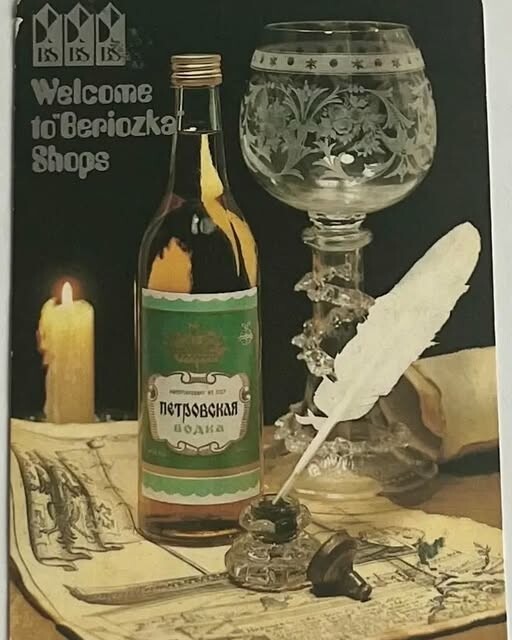 Советский карманный календарь. Реклама водки, адресованная иностранцам или тем редким советским гражданам, у которых были чеки (денежные суррогаты за которые можно было купить дефицитные товары).