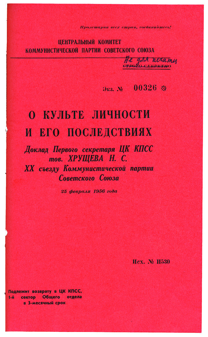 25 февраля 1956 г — в ходе XX съезда КПСС Хрущёв выступает с докладом о разоблачении культа личности Сталина.