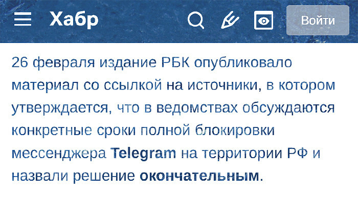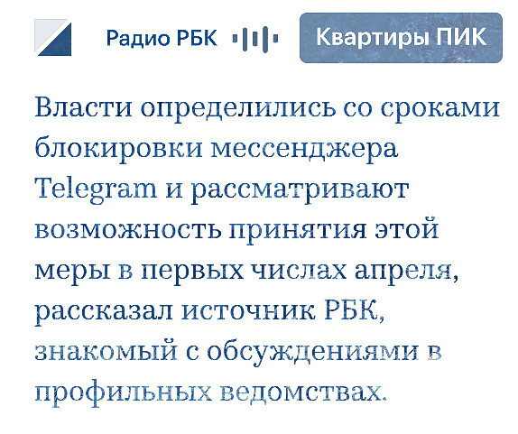 "Власти определились со сроками блокировки мессенджера Telegram и рассматривают возможность принятия этой меры в первых числах апреля, рассказал источник РБК, знакомый с обсуждениями в профильных ведомствах.