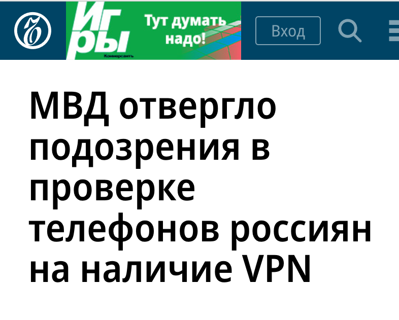 "МВД отвергло подозрения в проверке телефонов россиян на наличие VPN".
