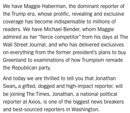 As if we need more toxic content in the elite political/media landscape of US. 🙄 #Fediverse https://www.nytco.com/press/jonathan-swan-joins-the-new-york-times/
