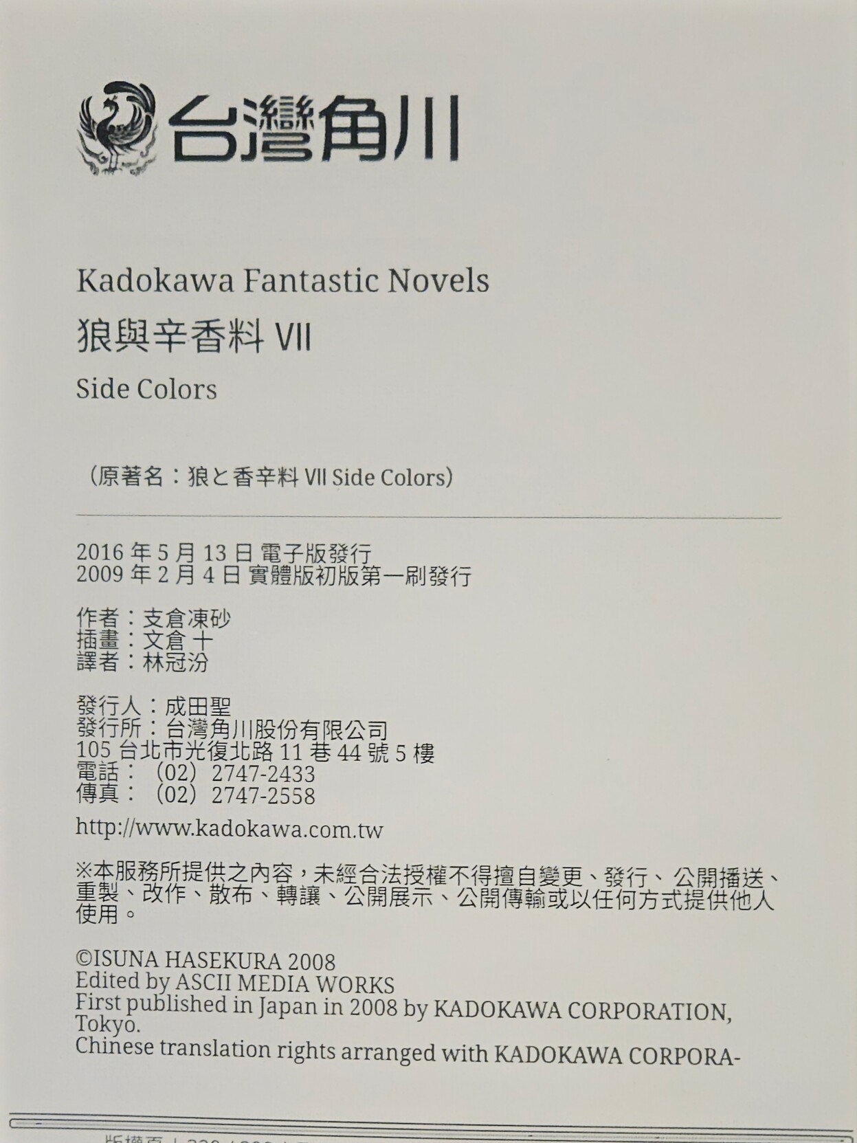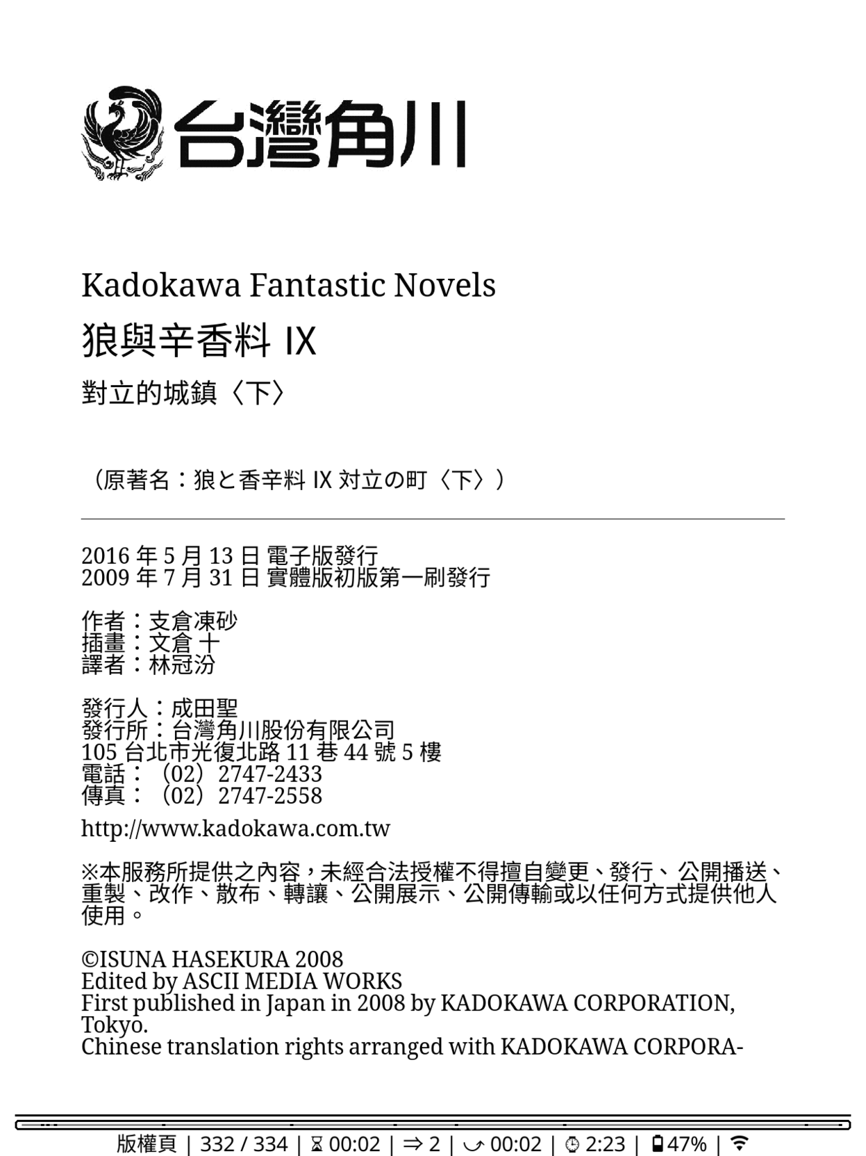 This is the 9th volume of Spice and Wolf. The novel is great. The anime is also great. Oh god, I can die with them. They are so good.