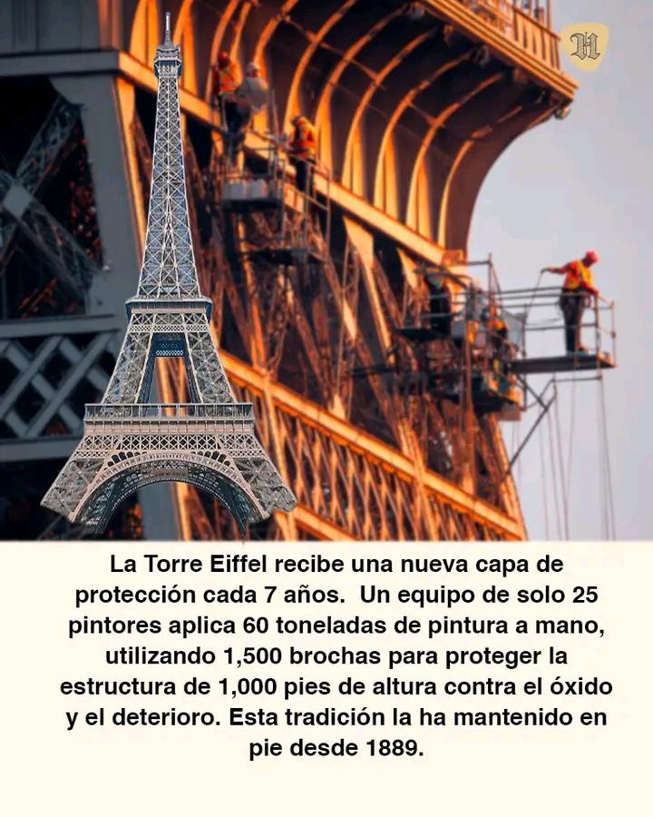 🎨 Repintar la #TorreEiffel no es decoración, es #supervivencia . Desde 1889, la Torre se repinta cada 7 años en promedio: 250 000 m², 60 toneladas de pintura, campañas de 16 meses a más de 3 años y un coste estándar de 3 millones de euros.