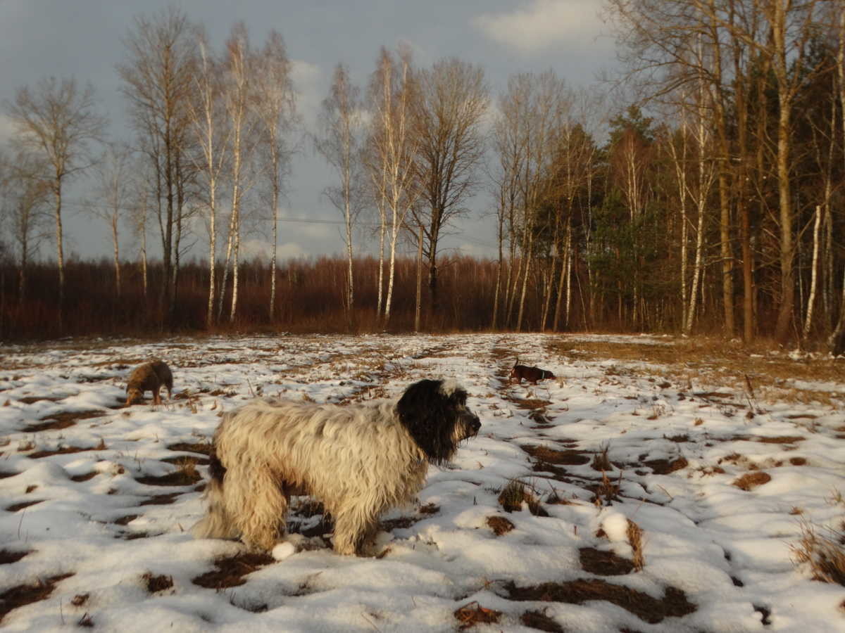 After weeks of cloudy skies we finally had some sunshine. The low quality sunshine you would expect in the #forests of #EasternPoland at this time of the year, but nevertheless real sunshine, not the canned thing we've depended on. #IdaPsięta, our pack of #dogs, appeared to be happy