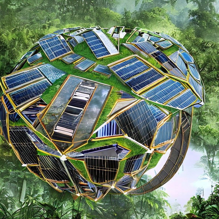 „A high tech #solarpunk utopia in the Amazon rainforest” generated by AI