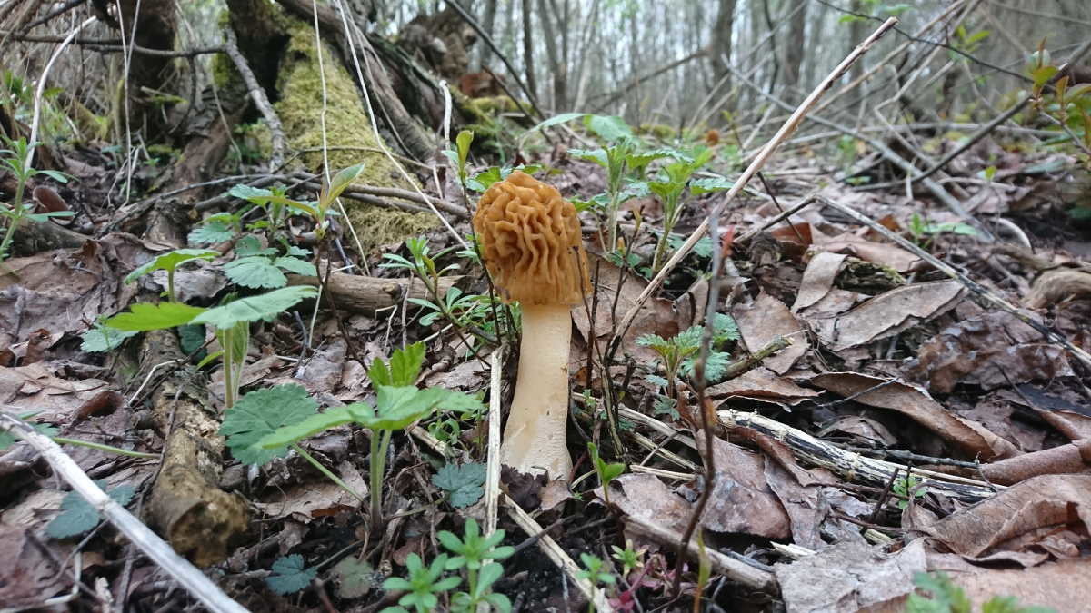 Common morel, Morchella esculenta. Reportedly delicious, but a protected species in Polish forests.