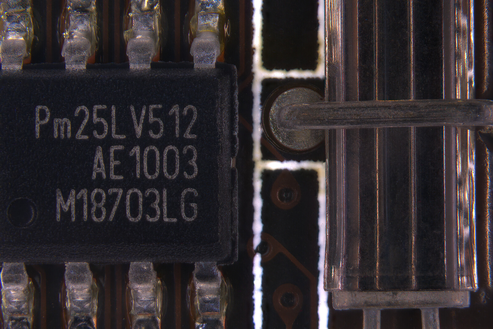 There is this trick in microscope photography that involves filtering the light through a polarizing filter, and then putting another out-of-phase polarizing filter in front of the lens. This largely eliminates specular reflections and makes it so much easier to decipher the markings on SMD chips.