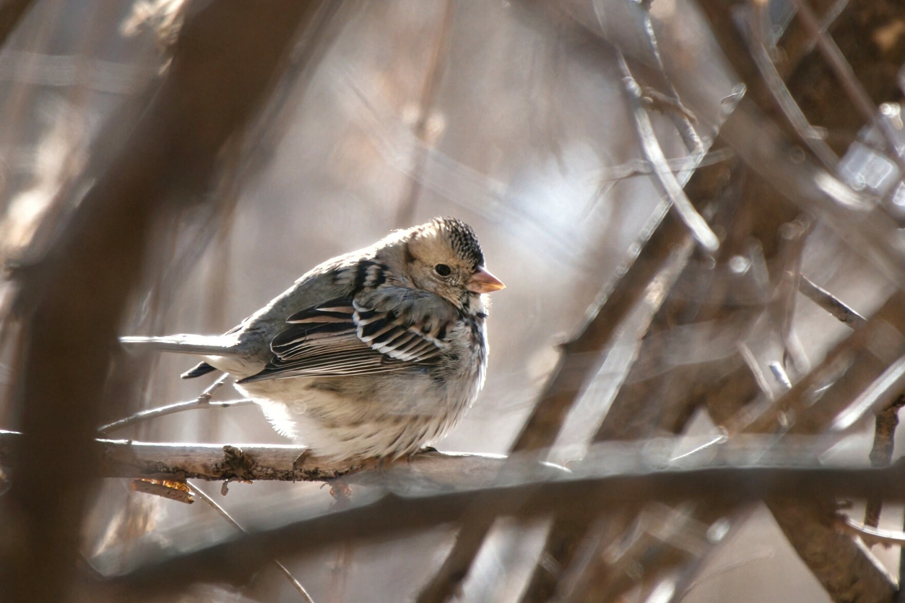 *Little Brown Bird (a technical term I learned from our local herpetologists). I'm no good at identifying LBBs, but this might be a Harris's Sparrow braving the icy February wind.