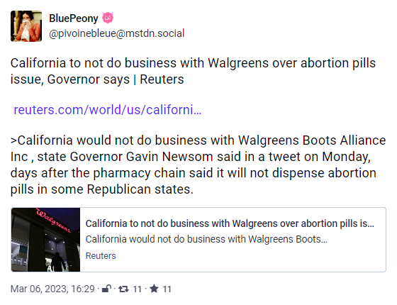 IOW: the 5th largest economy told Walgreens to fuck themselves for being submissive to fascism.