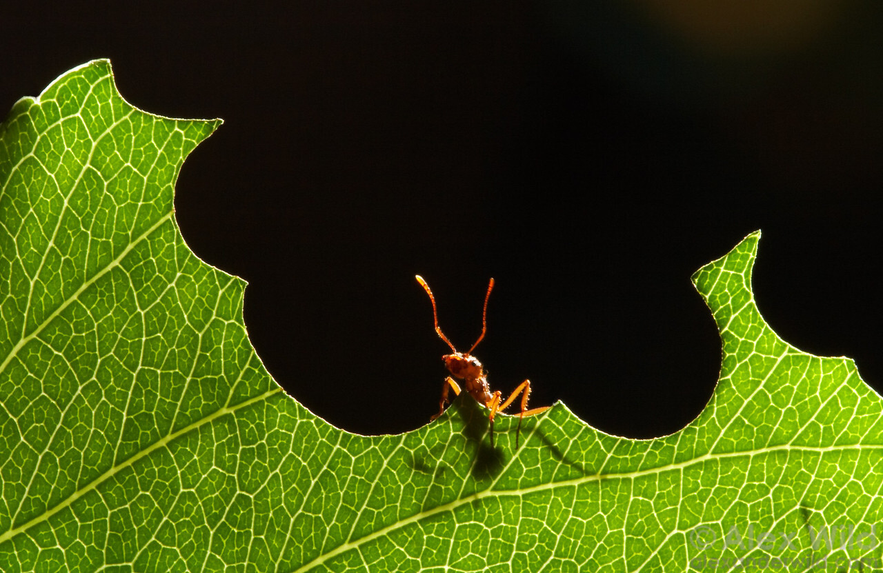 The key to this photo was placing the flash above and behind the leaf, facing the lens.