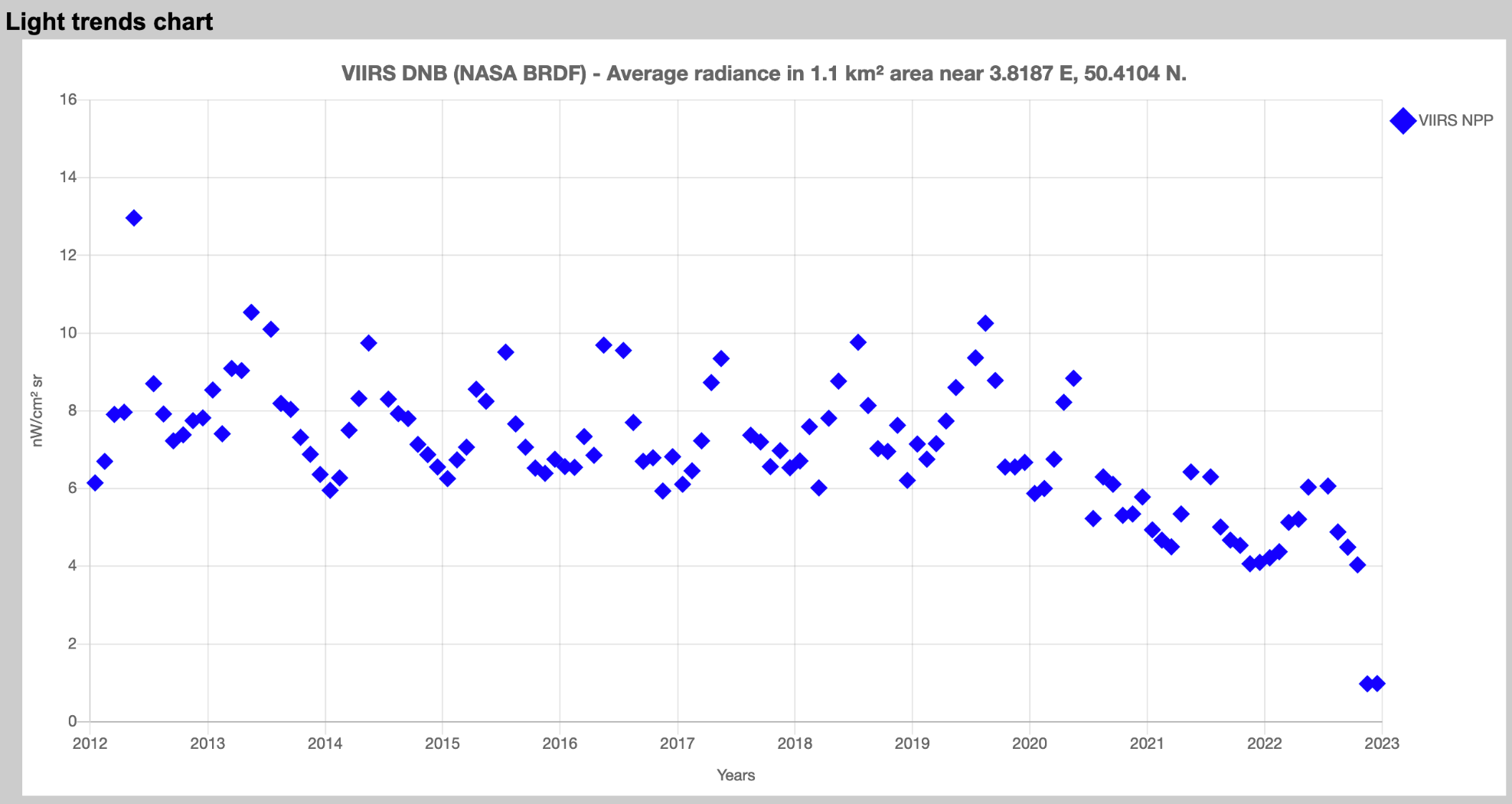 This area near Mons, Belgium turned off their streetlights late at night starting last November, in order to save energy. Check out what happened to the nighttime satellite imagery!