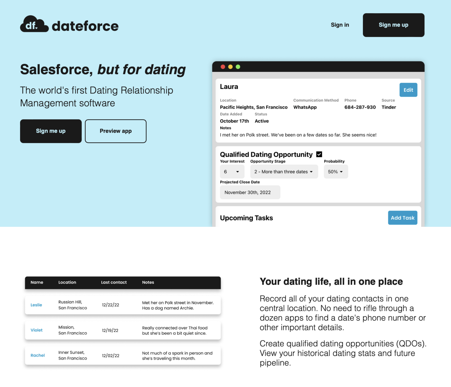 • literally called "dateforce", a name that is definitely not nauseatingly problematic