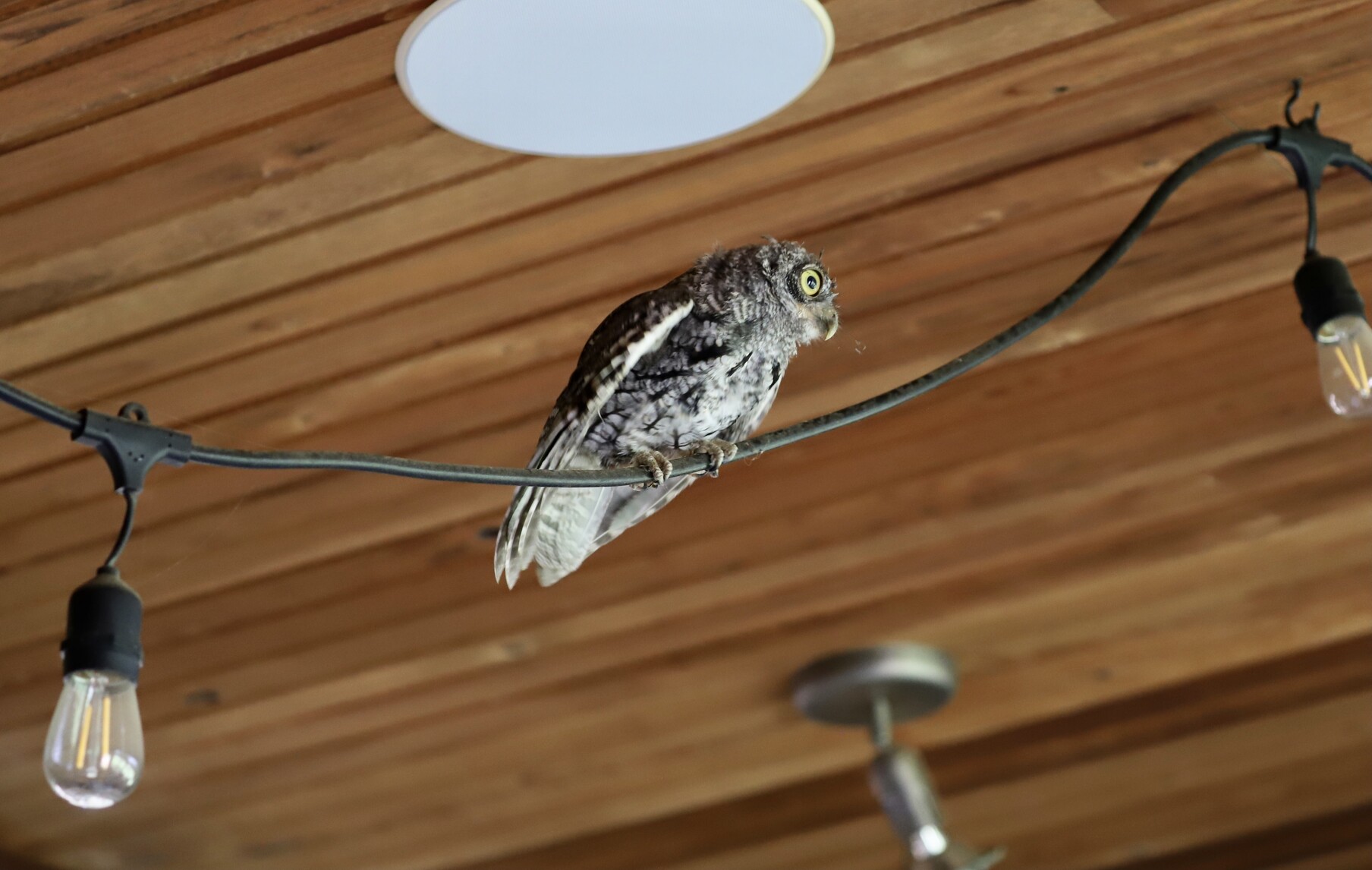 No idea how this superb screech owl got trapped in the screened porch, traumatizing all parties involved, but the episode was soon brought to a satisfying conclusion by propping open the door and letting nature take its course.