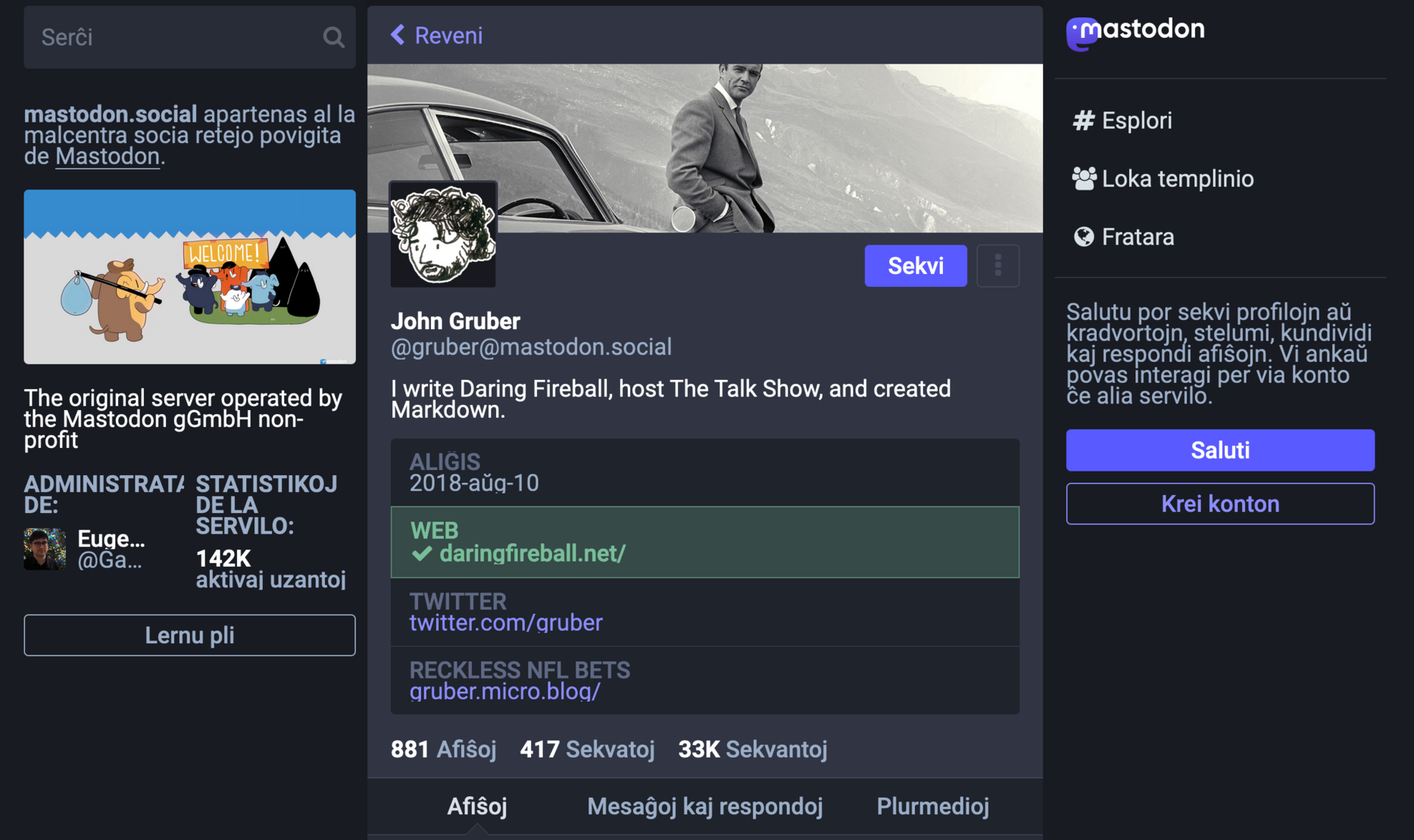 Hah! I just noticed that someone translated the mastodon UI to #esperanto