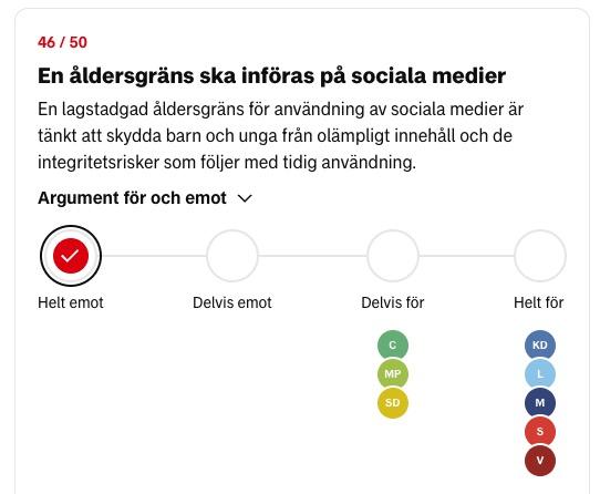 I praktiken är det typ redan 13 årsgräns på alla sociala medier, för Folkhälsomyndigheten rekommenderar sen 2024 att föräldrar ska