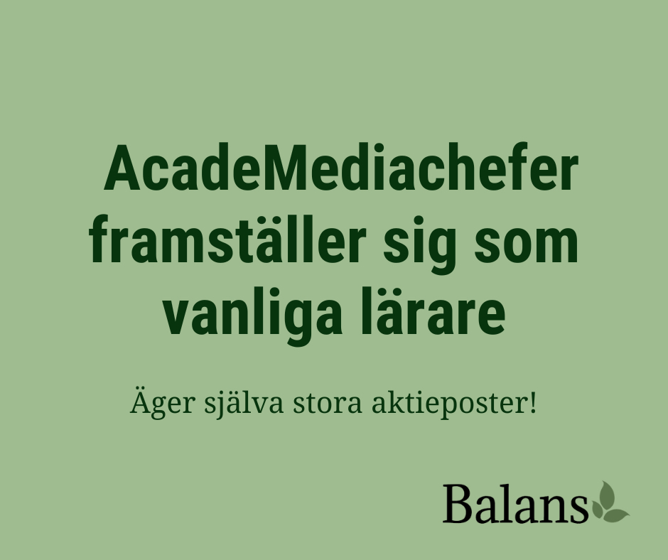 Sedan Academedias grundskole- och gymnasiechef i februari 2024 påstod att de ”varken fokuserar på ägare eller aktiekurser” har deras eget aktieinnehav i Academedia gått upp med total 2,4 miljoner kronor (optioner ej inräknat). tankesmedjanbalans.se/academedias-...