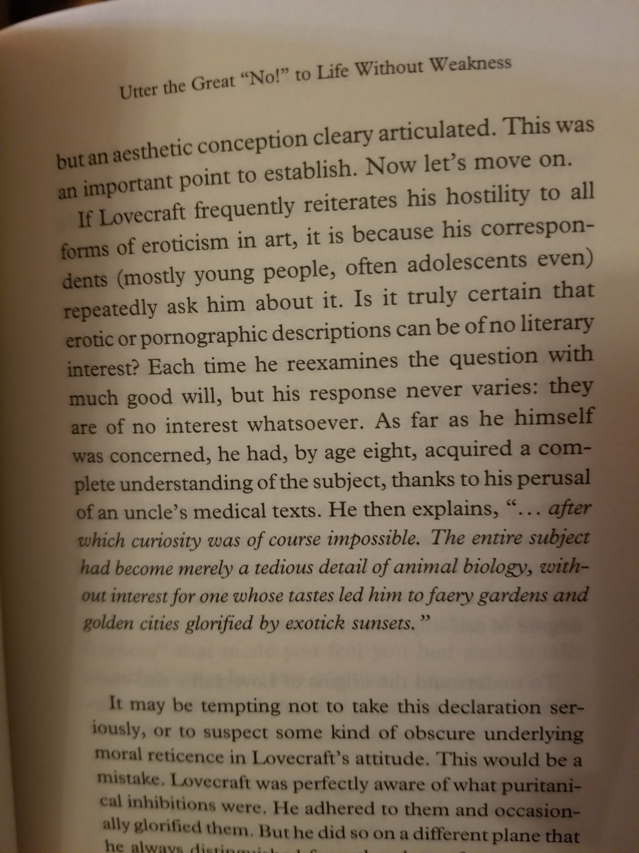 All attempts to inject Lovecraftian fiction with sexuality are abject failures according to Houellebecq because the chief aim is to induce fascination.