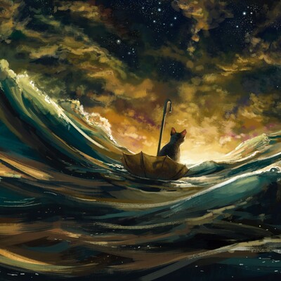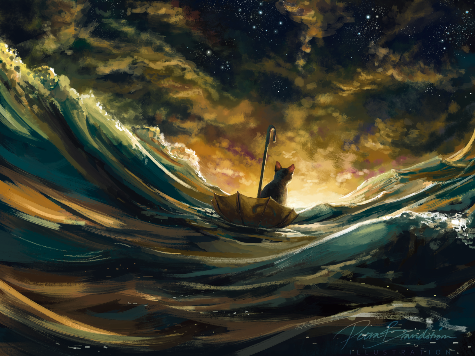 #cat #ocean #waves #fantasyart #fantasyillustration #mentalhealth #lost #dawn #digitalpainting