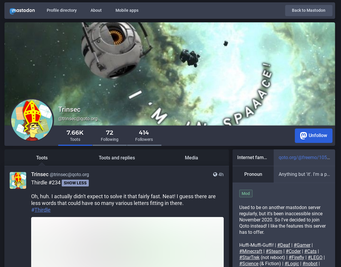 The link, https://qoto.org/@trinsec, is what shows up when I hover the cursor over your name.