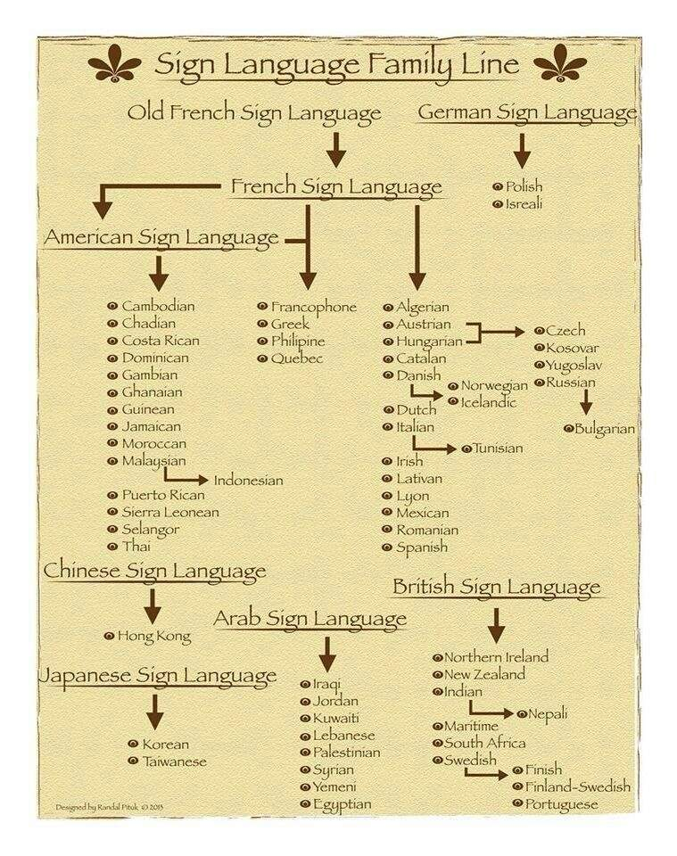 This picture isn't 100%, but it should already give you a very decent overview of the various sign language families.