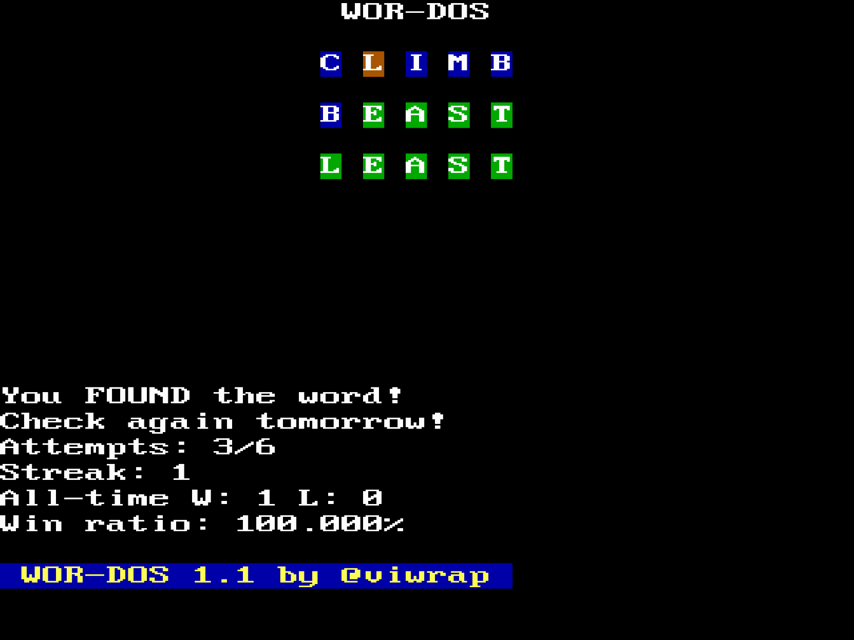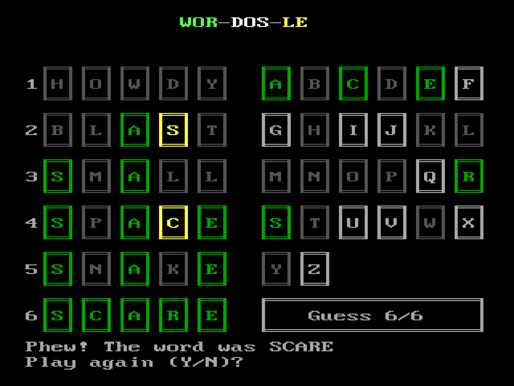Currently I'm aware of four DOS implementations of Wordle: #DOSGaming