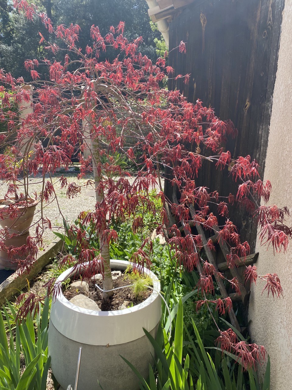Pretty sight: red leaves being created by my Japanese maple tree 🍁
