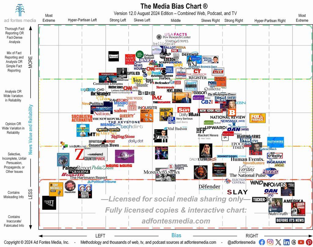 It's probably time to post this useful, controversial prism again. The Media Bias Chartby https://adfontesmedia.com/