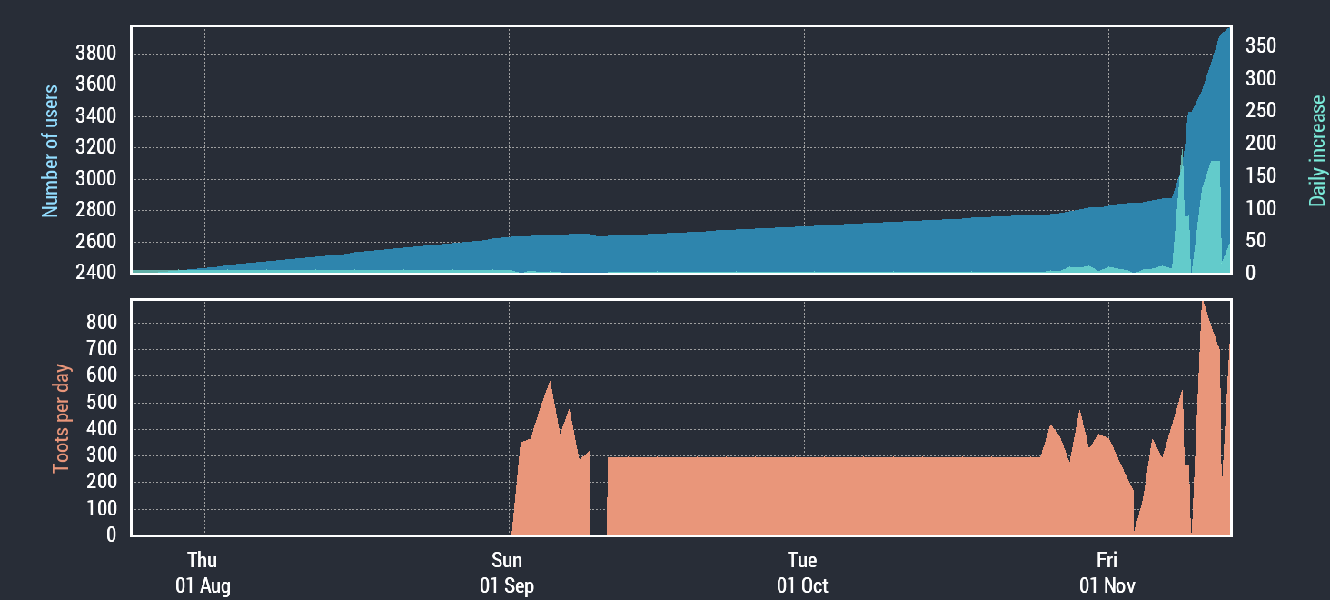 4,300 accounts +3 in the last hour+110 in the last day+395 in the last week